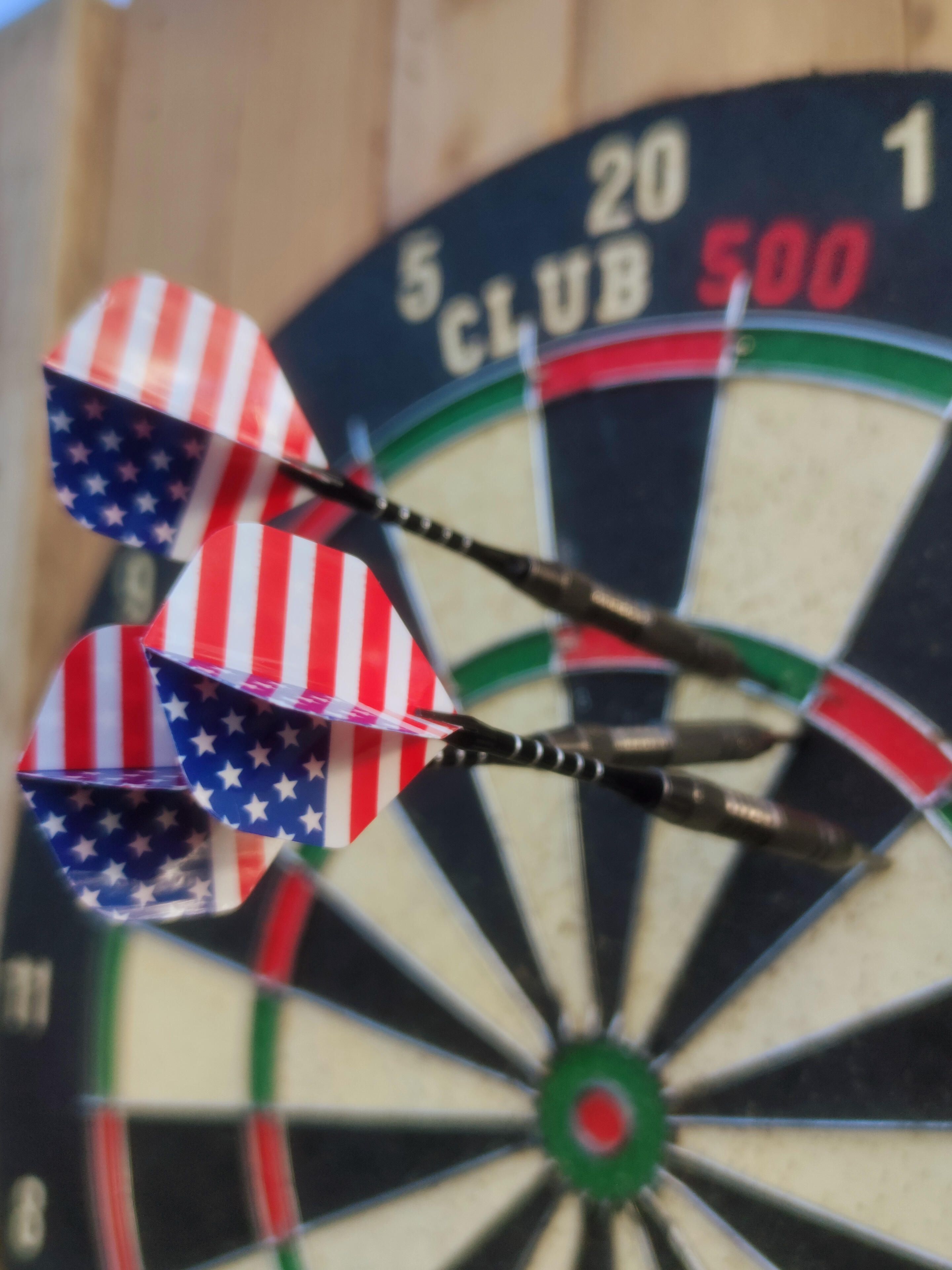 Laissez-vous tenter par ce classique des jeux de café, et jouez au 301, 501 ou encore au cricket. Avec sa cible en fibres naturelles et ses fléchettes en acier, les plus passionnés retrouveront les sensations d'une vraie partie de fléchettes.Matériel mis à disposition :